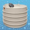 Ke každé jímce od nás jako dárek dostanete pochozí poklop v hodnotě 1210,- Kč zcela zdarma. Součástí balení jsou pak nátoky a odtoky standardních průměrů, průchodky DN 32, výztuhy a revizní komín do 30 cm.