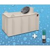 Plastová uzavřená nádrž z polypropylenu určená k uchovávání dešťové vody. Lze užívat na zálivku zahrady a jiné účely, tam kde stačí užitková voda. Voda ze střech je svedena do nádrže a odčerpává se čerpadlem.